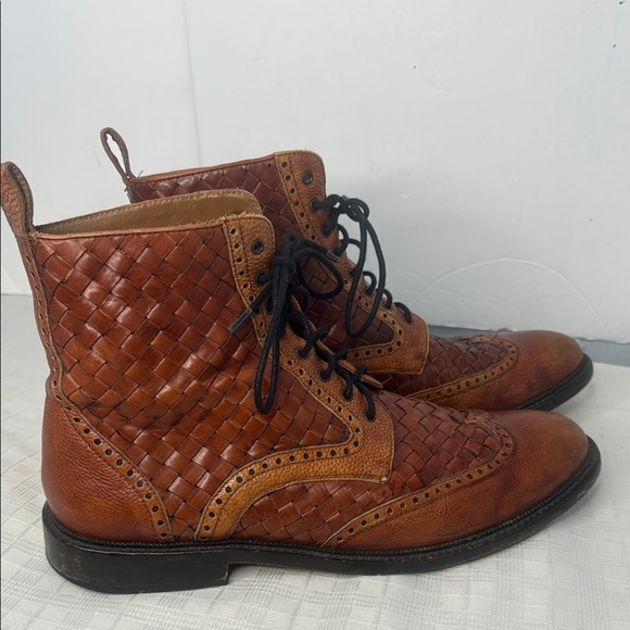Meet the saint boots, we have this boots in the works for some time and it turned out beautifully. There are not many shoe factories in the world that would attempt such a boot and we are grateful that our Spain team was equal to the task. This boot features a wingtip leather boot with woven inlay.