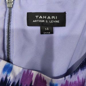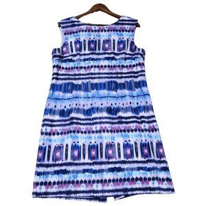 Tahari Asl Sleeveless Ikat Linen Rayon Blend Sheath Blue Purple Dress 14