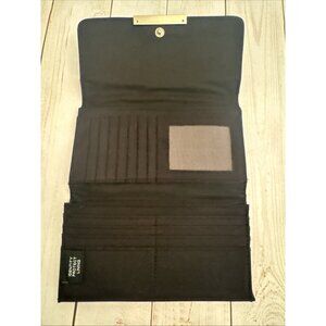 Tahari Black Womens Faux Leather Trifold Wallet Identity Protect Lining 8x5” EUC