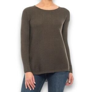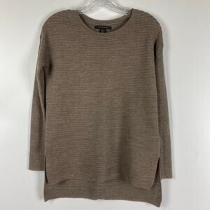 Tahari Merino Wool Blend Button Back Ribbed Sweater Chocolate Brown Womens Sz XS