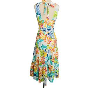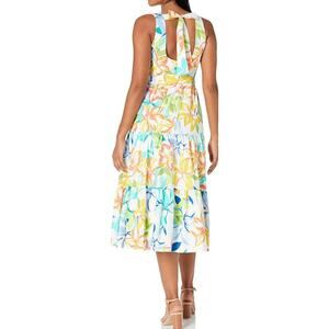 Tahari Tropical Floral Tiered Tie Back Midi Dress