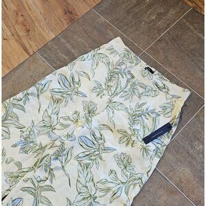 Tahari Wide Leg Yellow Floral Women's Linen Pull On Pants Size M