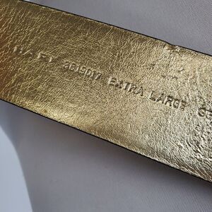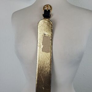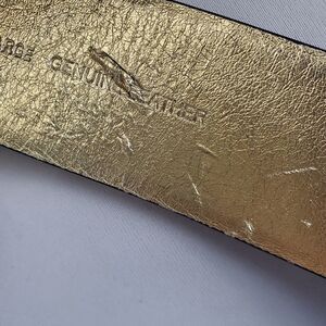 100% leather. Shiny embossed reptile print. Gold hardware. Slim corset. Attachments swivel for comfort. Gold inside and hardware. Some damage to the gold lining. All defects show in photos. Please ask any questions before purchase