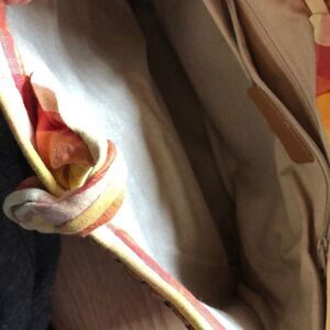 Beautiful Taiuti made in Italy woven purse with leather trim . Tie closure. Zippered pocket