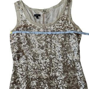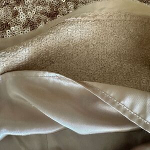 Stunning silk embellished dress in champagne / gold colored sequins. Ram hem/trim. Zipper closure. Lined. Measurements in pictures.