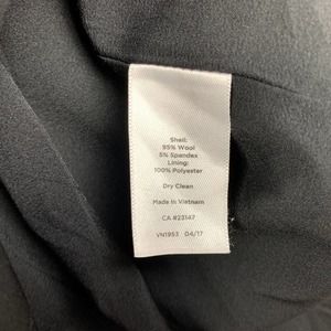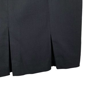 Talbots straight pencil skirt in women’s size 10. Black 95% wool 5% spandex. 100% polyester lining. Dry clean. Lined. Zipper at the back. The back hem is slightly longer and there is pleating at the hem. Fabric woven in Italy. There are scratches on the zipper pull and some faint writing on the tag. Please see pictures.