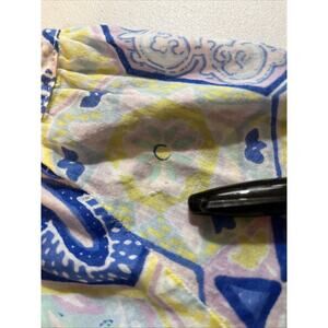 Talbots Coastal Colorful Peasant Blouse Blue Floral Patchwork 3/4 Sleeve SZ LP