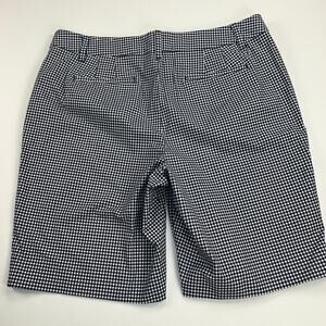Talbots Perfect Short 10.5” Navy White Gingham Check Chino Shorts Size 14