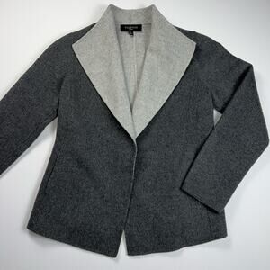 Talbots Petites Wool Cardigan Sweater Jacket Two Tone Gray Pockets Size S