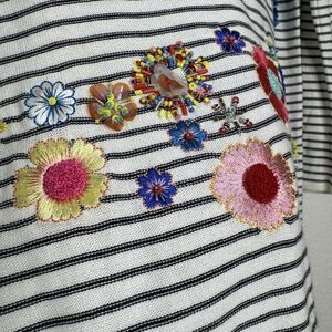 Talbots Sweater Medium Striped Floral Embroidery Beaded Embellish Bell Sleeve