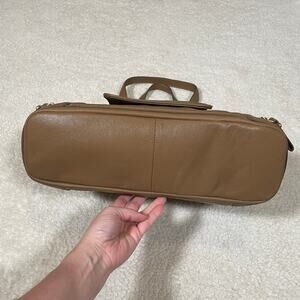 Talbots Tan Leather Satchel Handbag Large Pebbled Multi Zip Compartments NWOT