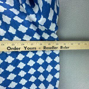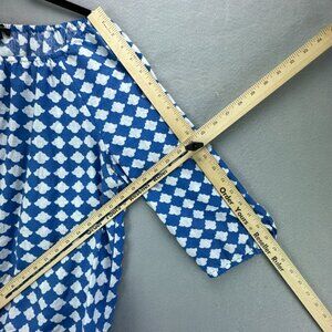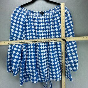 Talbots Top Womens Medium Blue White Pullover Linen Elastic Tie Hem 3/4 Sleeve