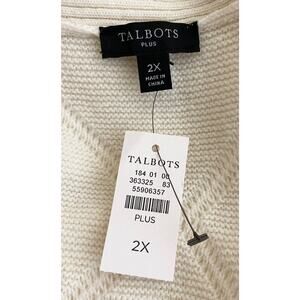 Talbots Womens Argyle Texture Cardigan Merino Wool Cashmere Sweater Cream NWT 2X