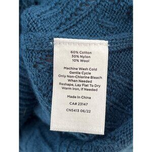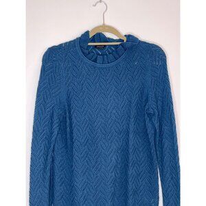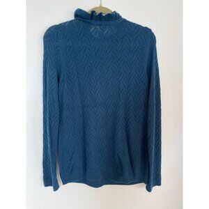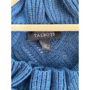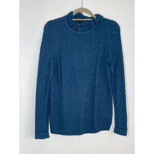 Talbot's Wool Blend Texture Stitch Ruffle Neck Pullover Teal Blue Sweater Size M