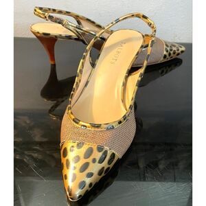 Talbots New slingbacks brown with leopard pattern 8.5 M Pointed Front Slip On