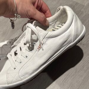 Stylish off-white canvas shoes with lace-up closure. Perfect for casual outings.