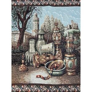 If you like 18th century, Greek or Roman landscape, this pillow cover fits the bill. It's front is tapestry, back is a harvest yellow color with a satiny detail and has a zip closure. The fabric is not think or cheap feeling. No tags but appears to have not been used.