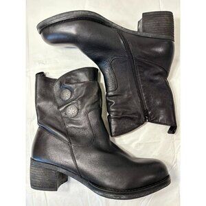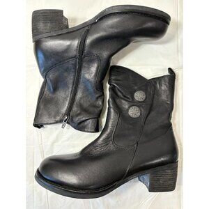 Tara M Devon Zip Up Two Button Black Leather Boots Womens Size 10