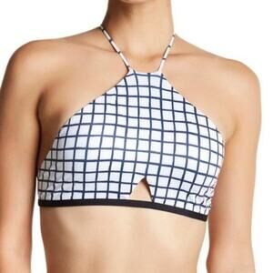Tavik Rylan Neck Bikini Top in Blue and White Grid pattern. Very good preowned condition, Size: Medium