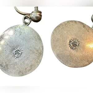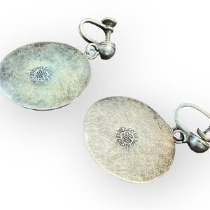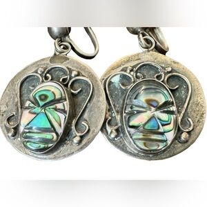 Taxco | 1940’s Carved Abalone Aztec Warrior Sterling Silver Screwback Earrings