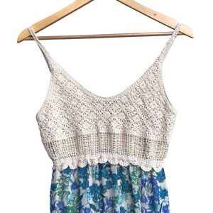 Taylor Boho Crochet Tiered Floral Maxi Dress Size XS