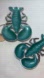 Stylish teal lobster-shaped dish with silver accents. Perfect for adding a coastal touch to your decor.