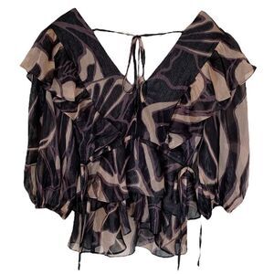 Ted Baker Jasmyna Metallic Purple Tiered Ruffled Puff Sleeve Top NWT Size 0/US 2