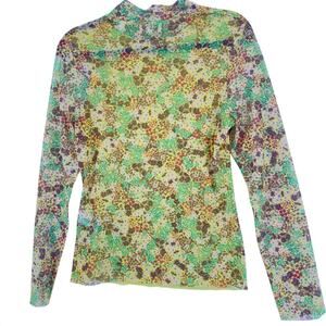 Ted Baker London Boho Bohemian Cottagecore Floral Mesh Sheer Mock Neck Top Sz 3