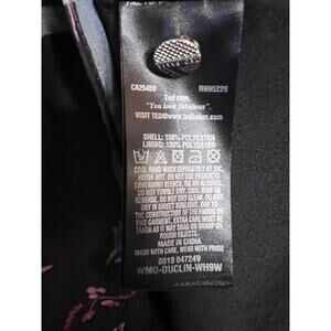 The Ted Baker London dress in size 6 features a stylish black bird print on a multicolor background, with ruffled collar accents. Made from polyester, this A-Line dress is perfect for summer and spring occasions. With a short dress length and long sleeves, this dress is sure to stand out and make a statement with its unique design. Remember to dry clean only to maintain the quality of this fashionable piece from a reputable brand like Ted Baker.