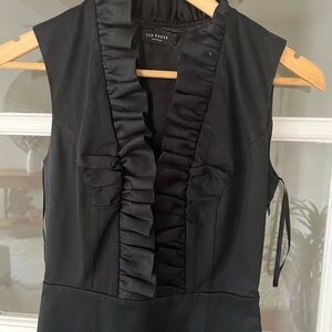 Ted Baker Mini dress -  ruffle collar - size 1 - US 4 - black - side zipper closure - pre owned - excellent condition