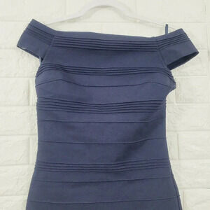 Ted Baker Women's Bardot Off The Shoulder Dress Cap Sleeve Stripe Blue Size 4
