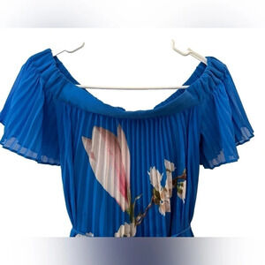 Ted Baker Women's Size 1/ US 4 Blue Floral Melma Harmony Accordion Pleat Dress