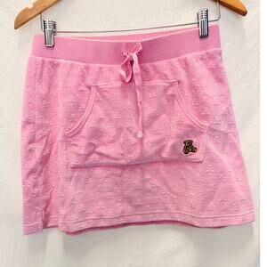 Teddy Fresh Baby Pink Velour Teddy Embossed Cardigan Skirt Set Small Y2K 2000s
