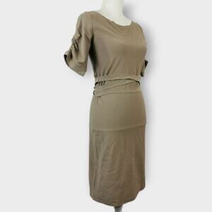 Tehen France Sheath Dress Tan Boat Neck Career Polished 1/4 Sleeves Size Medium