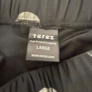 The Silver Star Foil leggings by Terez in black is a full-length performance legging that is breathable, moisture-wicking, and lightweight. These leggings won't stretch out, even in the most high-impact activities.