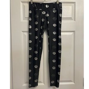 Silver bonded lip appliqués adorn these leggings for an edgy, fashion look.