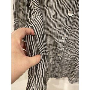Terra Shirt Womens Small Black White Striped Button Up Lightweight Tencel Rayon