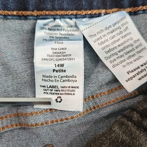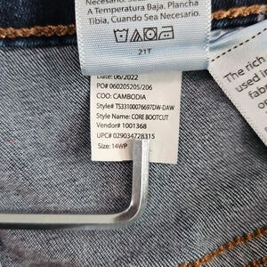 Introducing a fantastic pair of Terra & Sky Jeans in Women’s size 14WP (34x29), perfect for those seeking comfort and style. These jeans are designed with a petite core bootcut fit, making them ideal for shorter women who want a flattering silhouette. The dark wash blue color adds a touch of sophistication, making these jeans versatile enough for both casual and semi-formal occasions. The image provided showcases the excellent condition of these gently used jeans, highlighting their quality and timeless appeal.