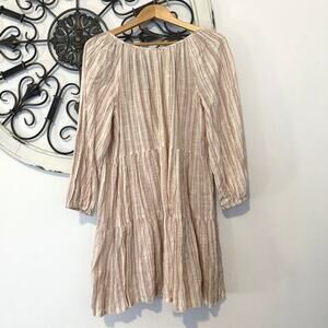 The Great. Prairie Oversized Boho Chic Dress Natural Beige Stripe Womens 0 XS