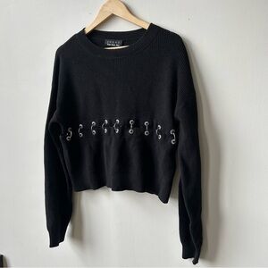 This black jumper is made from soft, comfortable cotton. It is adorned with openwork details and silver-toned piercing-style jewelled details on the sleeves and body which guarantee an on-trend rock 'n' roll touch. Team it with jeans and trainers for a casual look with a rebellious vibe.