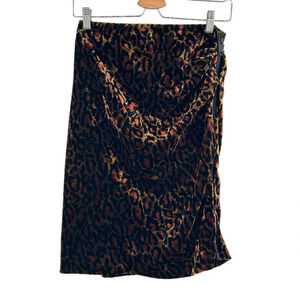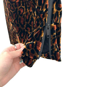 The Kooples Fire Brown Velvet Skirt Leopard Print Front Zipper Size 2 Medium