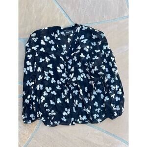 The Kooples Women's Split Neck Long Sleeve Floral Button Up Silk Blouse Size L