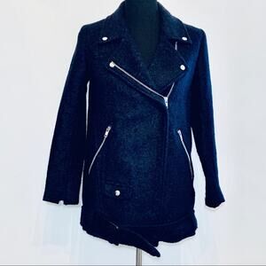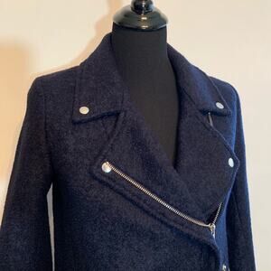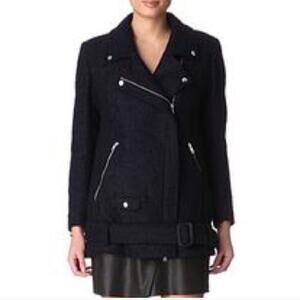 The Kooples navy blue wool blend moto biker coat size 34 or Extra Small XS