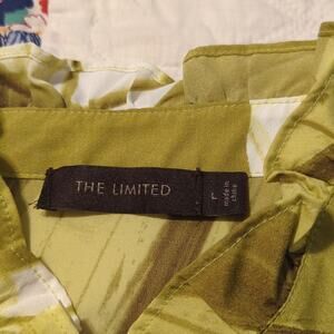 The Limited Green Leafy Sleeveless Button Down Pleated Front Ruffle Mock Neck Blouse Women's Size L. Armpit to armpit measures 20". Pre-owned, this feminine blouse is in excellent condition.