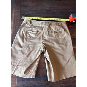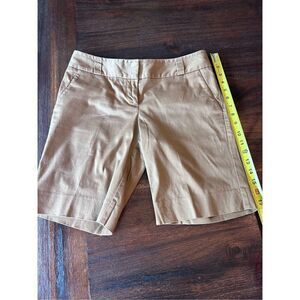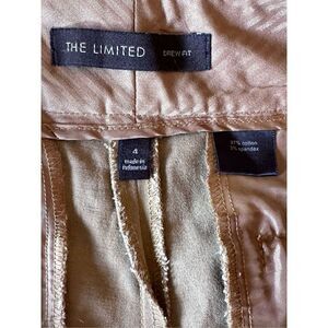 The Limited ladies pretty camel color Drew fit short in size 4.  Excellent used condition, rarely worn. 9 -1/2 inch inseam. Two front slant pockets and two buttoned back pockets. Cotton and spandex blend for perfect fit.  Match a Limited blouse in my closet perfectly.