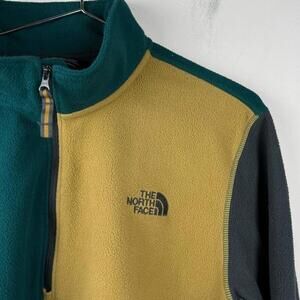 The North Face 1/4 zip Pullover Sweater Mens L Green Tag Gray Fleece Jacket
