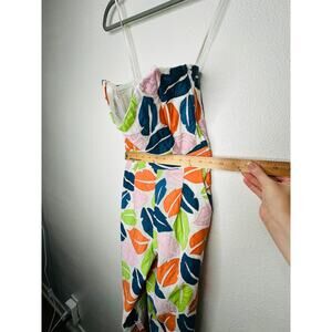 The Odells Ellie MultiColor white blue orange green pink large Leaf Print Bustier style pocketed Jumpsuit Romper one piece
