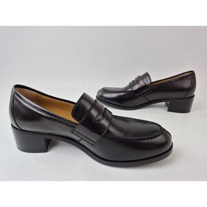The Row Women's Black Vera Leather Penny Loafer Heel Size 38