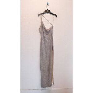 Stretch jersey fabric with sequin embellishments throughout and side seam slit
