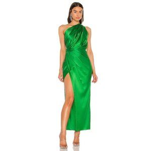 The Sei X REVOLVE Asymmetrical Draped Dress Kelly Green Silk